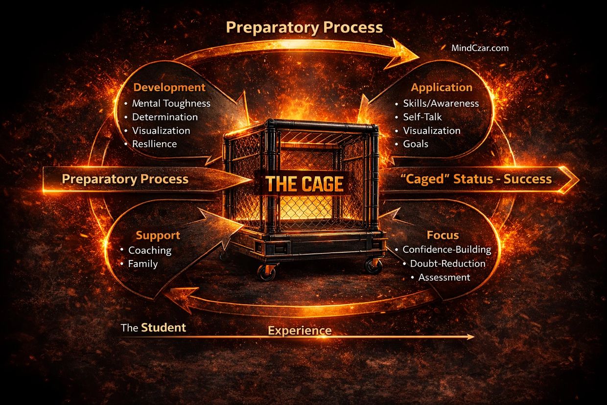 The “cage” is a controlled psychological environment an athlete learns to enter before performance.